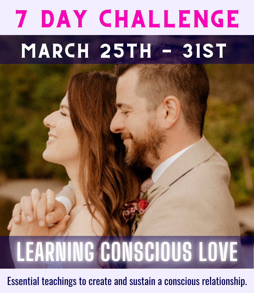Over the course of 7 days, we are going to answer all of these questions. We are sharing the essential tools, healing methods, and practices that lead to conscious, lasting love.
